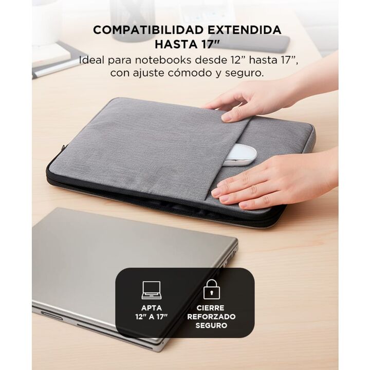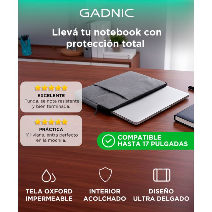 Protección total para notebooks grandes Fabricada con material Oxford impermeable y diseño acolchado, ideal para notebooks de 12 a 17 pulgadas. Diseño liviano y funcional Práctica para transportar en mochila, bolso o sola. Sin volumen extra y con estilo profesional. Interior acolchado y cierre refor...