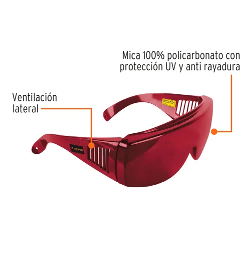 ENTES DE SEGURIDAD PARA LÁSER TRUPER GLNL-8R COLOR ROJO CARACTERISTICAS: - Espesor 2mm - Mica 100% policarbonato con protección UV y antirayadura - Aumenta la visibilidad del haz de luz verde del láser - Ventilación lateral - Precaución: no usar por períodos prolongados ni en condiciones de luz muy ...