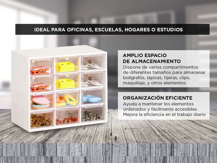 Gadnic presenta el nuevo Gavetero Con 12 Cajones de Almacenamiento: Espacio de Almacenamiento Amplio: Dispone de varios compartimentos de diferentes tamaños para almacenar bolígrafos, lápices, tijeras, clips, maquillaje, y otros elementos. Diseño Elegante y Funcional: Su diseño elegante y minimalist...