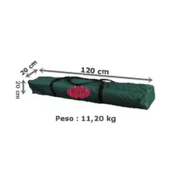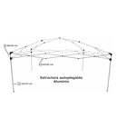 ESPECIFICACIONES: Medidas: 3x3x2.65 Mts Estructura de aluminio Techo reforzado de aluminio Tela 180 Gr Poliester. Resistente al agua Plegable Estuche incluido Tamaño terminado 3 x 3 x 2.65 (altura en el centro) Peso 11,2kg Medidas desarmado 1.20 x 0.20 x 0.20 Incluye Cuerdas y Estacas