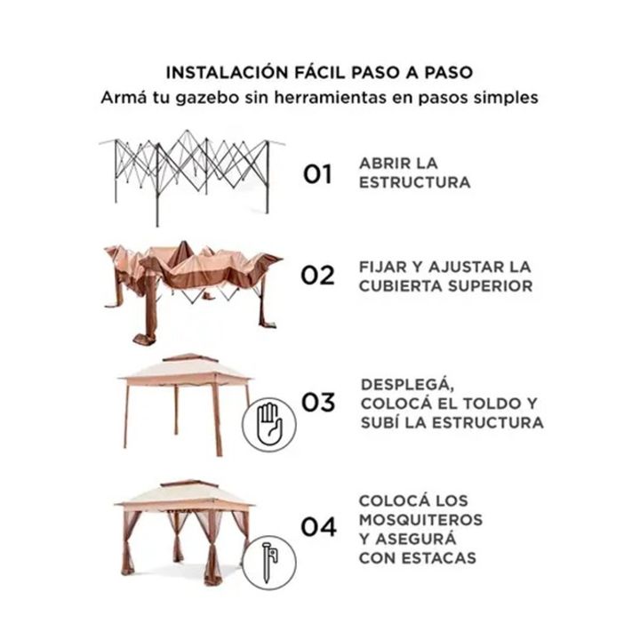 Gazebo PHP TZFG036-3.3×3.3 – Espacio protegido y cómodo para tu jardín Creá el ambiente perfecto al aire libre con el Gazebo PHP TZFG036, un modelo montable de 3.3 × 3.3 metros diseñado para brindarte sombra, protección y comodidad en cualquier espacio exterior. Su estructura resistente y fácil de a...