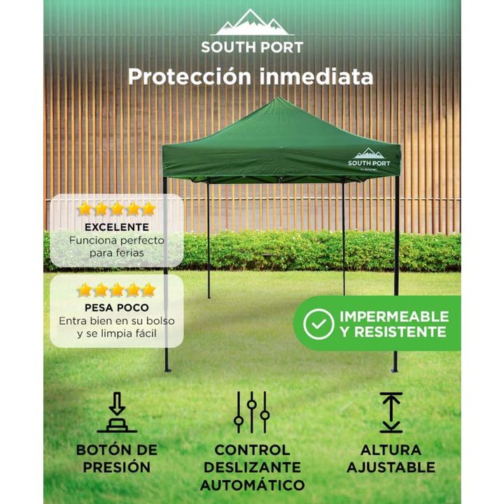 Descubrí la versatilidad y comodidad con nuestro Gazebo de calidad premium. Con cuatro niveles de ajuste de altura, nuestro gazebo se adapta fácilmente a cualquier entorno. Alcanzando una altura máxima de 2.1 metros y un pico central que se eleva hasta 3.2 metros, proporciona un amplio y cómodo espa...