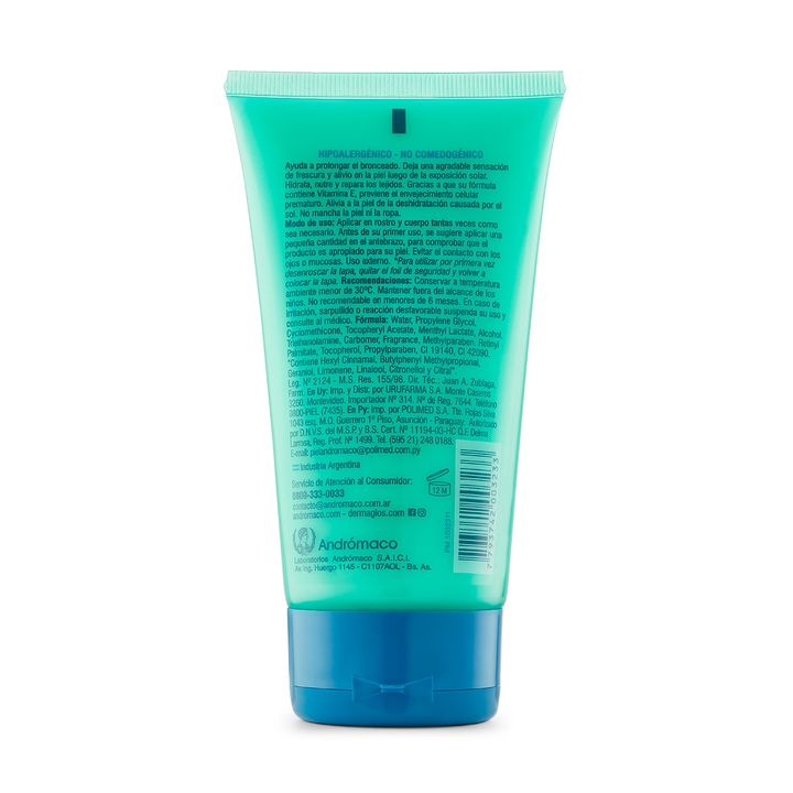 Gel Dermaglos Post Solar Refrescante Hidrata Nutre x150 Dermaglós Post Solar Gel Refrescante Hidrata Nutre x150 Luego de la exposición al sol la piel necesita ser cuidada. Formulados para hidratar, nutrir y reparar los tejidos, los Post Solares previenen el envejecimiento celular prematuro, ayudan a...