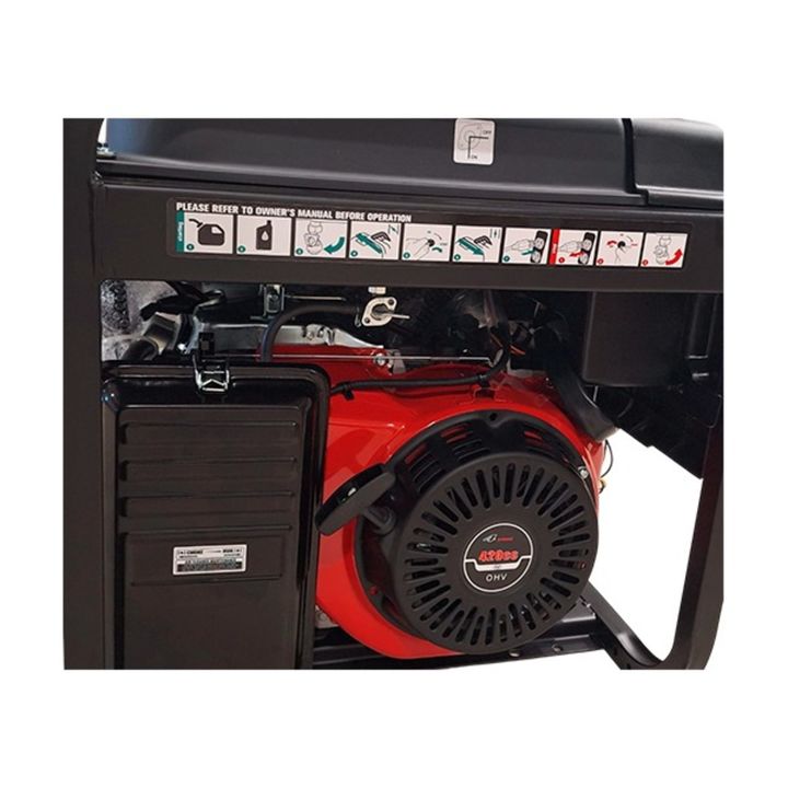 ESPECIFICACIONES: Voltaje: 220v Capacidad: 25 Lts Motor: 420 cc Potencia nominal: 5000W Potencia Máxima: 5500W Rpm Nominal: 3000rpm Incluye ruedas para mover el equipo