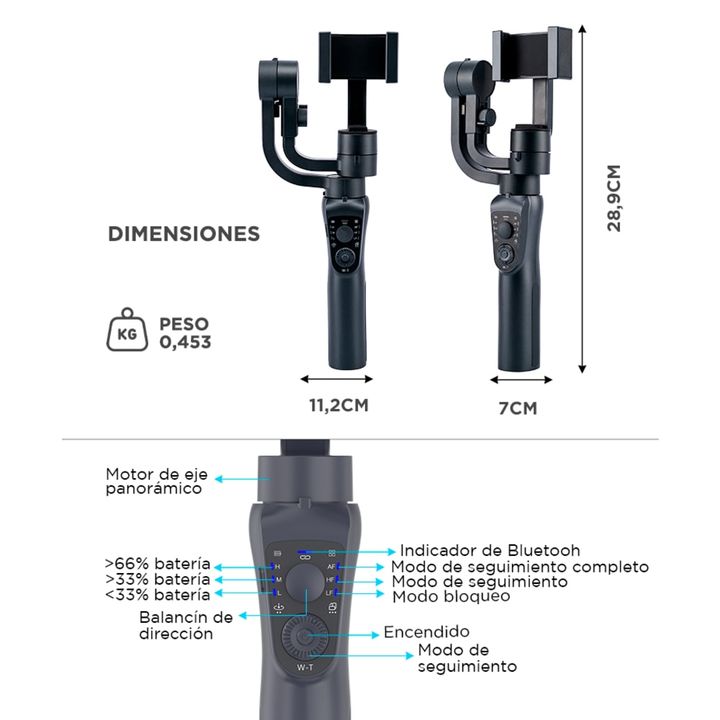 El Estabilizador Celular Gadnic es la herramienta ideal para quienes buscan capturar videos nítidos y estables con su smartphone. Con una batería de larga duración, hasta 500 minutos de grabación continua, y una capacidad de ajuste versátil para dispositivos de hasta 7.72” de tamaño, este estabiliza...