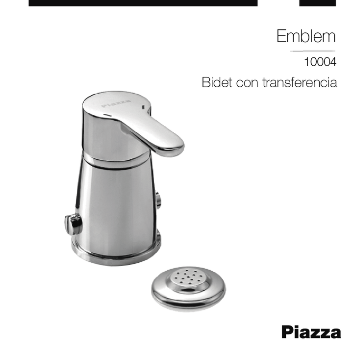 Grifería Monocomando Bidet Baño Con Transferencia Piazza Modelo: 10004 Características: -Marca: Piazza -Modelo: 10004 -Línea: Emblem Monocomando -Acabado: Cromo -Cuerpo totalmente metálico -Manija Metálica -Incluye lluvia de bidet y descarga -Incluye conjunto de fijaciones y flexibles G1/2 Pulgadas ...