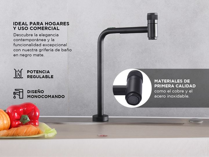 Descubre la elegancia contemporánea y la funcionalidad excepcional con nuestra grifería de baño en negro mate. Diseñada para destacar en cualquier entorno moderno, esta pieza combina materiales de primera calidad, como el cobre y el acero inoxidable, con un acabado sofisticado en negro mate. Con una...