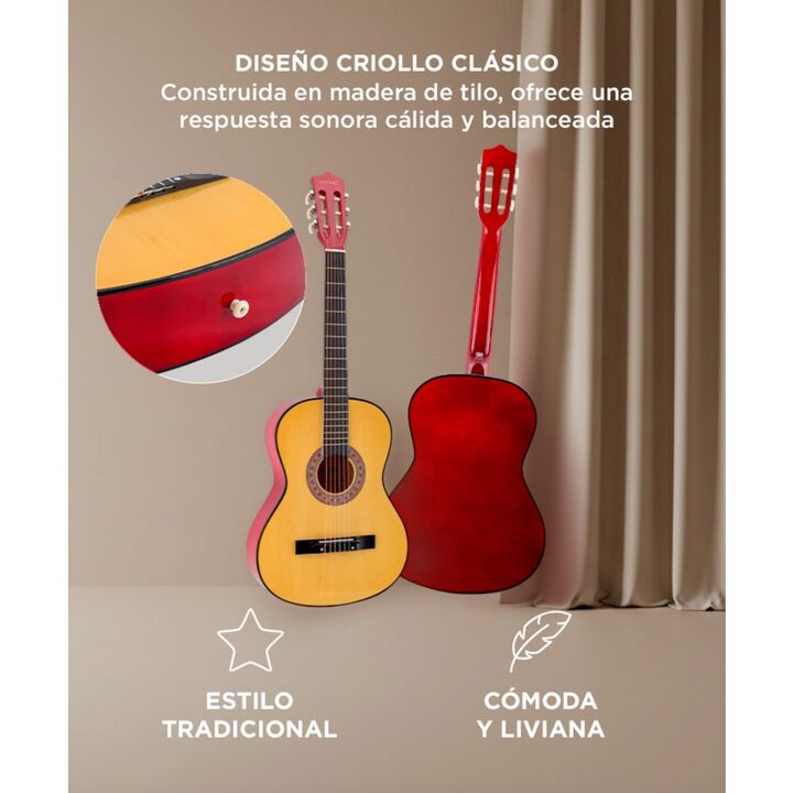 ¡Gadnic presenta su nueva línea de guitarras criollas! Necesitarás esta hermosa guitarra criolla terminada con cuerdas de bronce y nylon para completar tu interpretación mientras te sientas en el porche y cantas con tus amigos. Es el kit de inicio para el músico que llevas dentro. Hecho a mano con t...