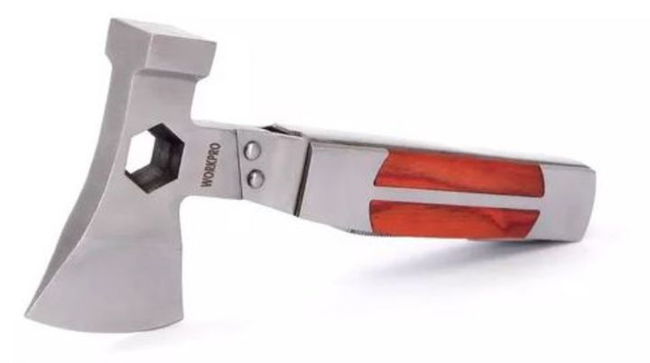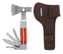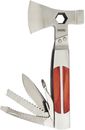 HACHA MULTIUSO 12EN1 W014012 WORKPRO # Cabezal doble hacha / martillo. # Mango de madera pulida y construcciónde acero inoxidable. # Estuche, Hacha, Martillo, Llave de tuercas cónica. # Navaja, Serrucho, Lima. # Abre botellas, saca anzuelos, limpia escamas. # Largo total 16 cm. Garantía 12 meses Ori...