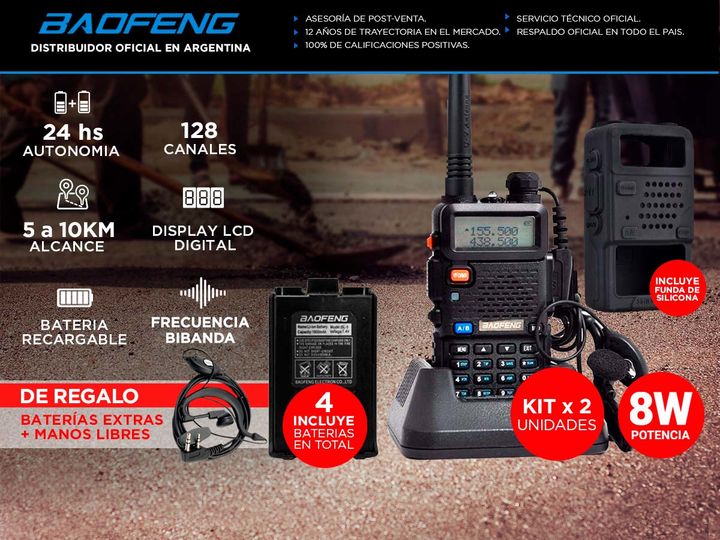¡Descubrí el Handy Baofeng BF-999S! Éste último modelo de Handy nos brinda un alcance de hasta 10km y resistencia al agua. Además de ser súper versátiles a la hora de transportar. Los Walkie Talkies incluyen manos libres y baterías extra de regalo. Este tipo de Handy cuenta con rango de frecuencia U...