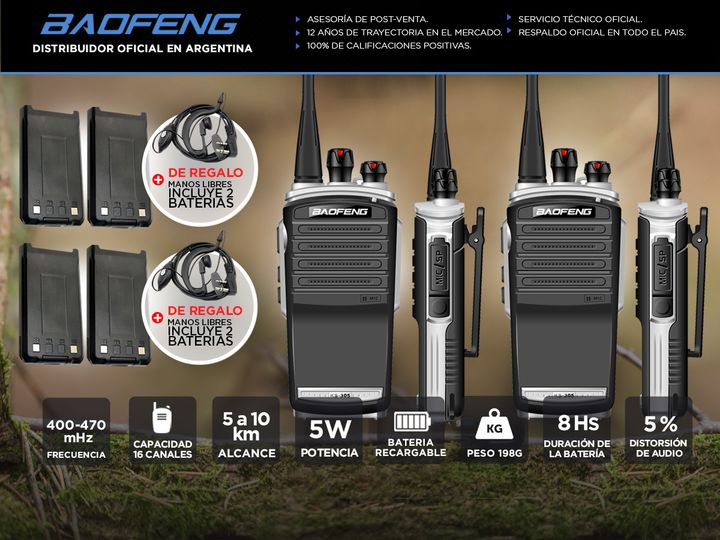 Nueva versión del Handy Baofeng BR-A58 con base de carga USB y auricular manos libres de regalo. Con un alcance de 3 a 5 km en ciudad y de 5 a 10 km al aire libre, este handy es ideal para una gran variedad de usos: caza, pesca, montañismo, vigilancia del medio ambiente, radioaficionados, comunicaci...