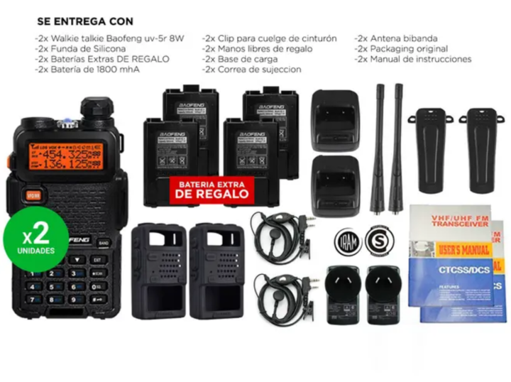 El handy BaoFeng UV5R 8 Watt es un walkie-talkie de mano compacto que proporciona versatilidad y un amplio espectro de frecuencias de funcionamiento. Es un handy compacto y económico que incluye una banda especial de recepción VHF. El transceptor es umultibanda micro-miniatura con una amplia cobertu...