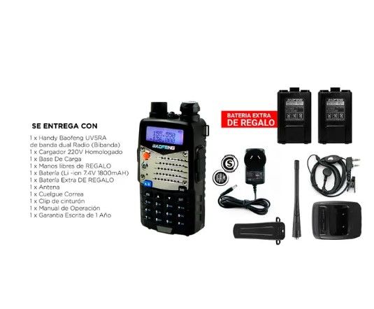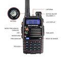 El Handy Baofeng UV-5R ofrece un rango de frecuencia de 136-174 MHz y 400-480 MHz, operando en doble banda para mayor versatilidad. Con una capacidad de 128 canales programables, asegura una amplia gama de opciones de comunicación. Su rango de comunicación entre dos handys va de 5 a 12 km, dependien...