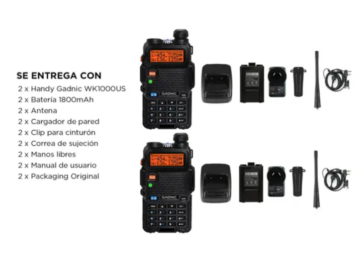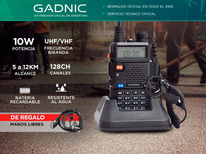 El Handy Gadnic WK1000US, con 10 Watts de potencia, es un walkie-talkie de mano compacto que ofrece versatilidad y un amplio rango de frecuencias. Este modelo económico incluye una banda especial de recepción VHF y funciona como un transceptor FM multibanda micro-miniatura, garantizando comunicacion...
