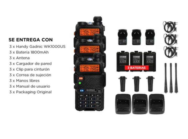 El Handy Gadnic WK1000US es un walkie-talkie de mano compacto con una potencia de 10 Watts que ofrece versatilidad y un amplio espectro de frecuencias. Este modelo económico incluye una banda especial de recepción VHF, asegurando una comunicación efectiva. Este transceptor FM multibanda micro-miniat...