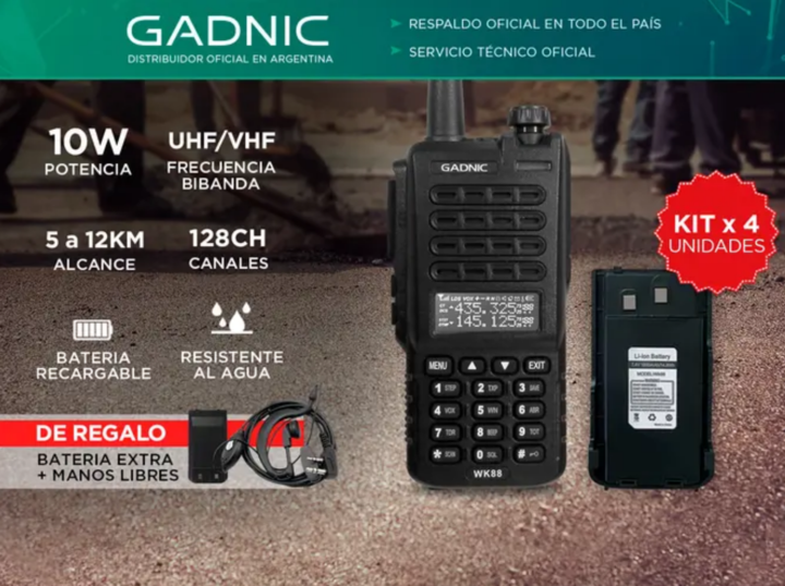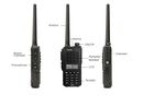 El Handy cuenta con doble banda y función dual standby, operando en frecuencias de 136-174 MHz y 400-480 MHz. Ofrece una capacidad de 128 canales, permitiendo diversas opciones de comunicación. La separación entre canales se ajusta a 5, 6.25, 12.5 o 25 KHz, asegurando una transmisión clara y sin int...