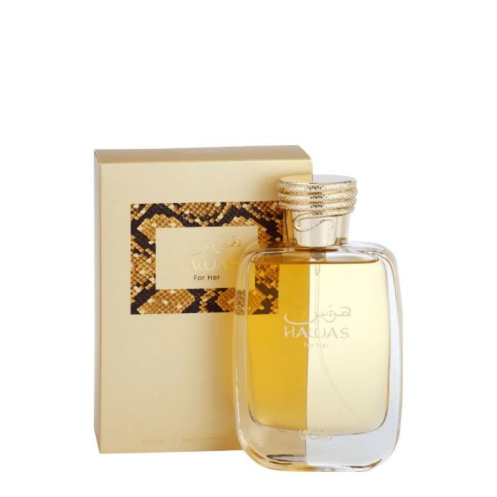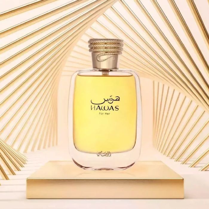Hawas For Her es una fragancia femenina irresistiblemente adictiva, que inicia con una chispeante mezcla de granada, manzana y pomelo. El corazón de la fragancia revela un bouquet floral de iris y jazmín sambac, que aporta un toque de elegancia y sofisticación. Las notas cítricas añaden frescura y v...