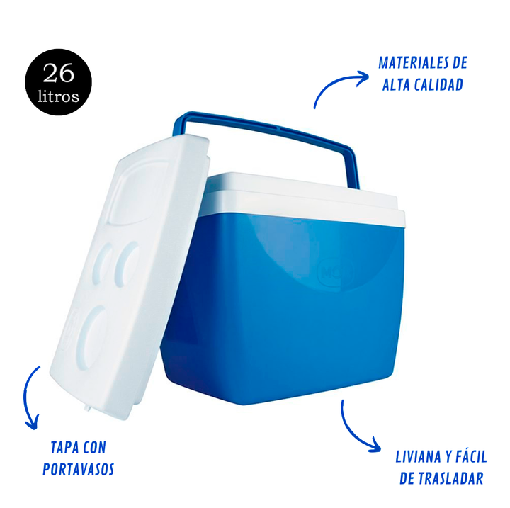 MOR CONSERVADORA 26lts SKU AZUL: 25108171 SKU ROJA: 25108172 SKU NEGRA: 25108175 SKU GRIS CON NEGRO: 25108176 Para acompañar tu día en la playa, acampar o incluso garantizar bebidas frías y snacks en viajes largos, ¡la Caja Térmica de Mor de 26 Litros es un artículo indispensable! Las Cajas Térmicas...