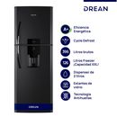 Heladera con freezer cíclica. Eficiencia energética A+. Color gris. Gas ecológico R600a. Capacidad bruta 396 litros. Capacidad neta 392 litros. Dispenser de 2 litros de capacidad. Estantes de vidrio templado en refrigerador regulables en altura para una mayor resistencia. Estantes de alambrón en fre...