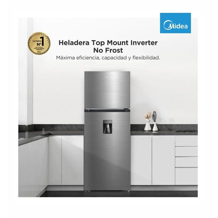 HELADERA NO FROST INVERTER MIDEA MDRT645MTE46ADW DISPENSER 470 LTS 188 X 70 CM TOP MOUNT ACERO INOX