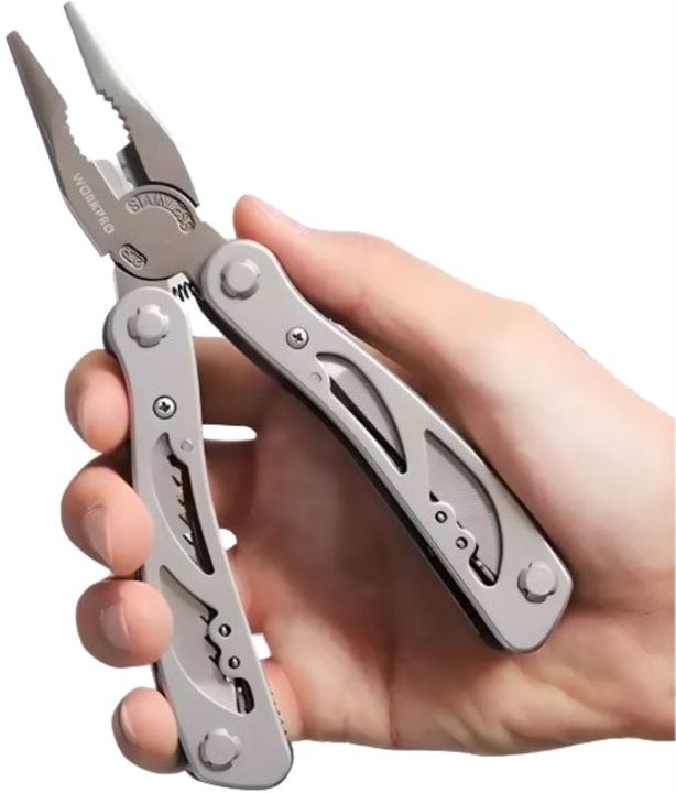 HERRAMIENTA MULTIFUNCION W014061 12EN1 WORKPRO # Pinza pico fino. # Corta cables. # Abre latas. # Abre botellas. # Destornillador Phillips y Planos en distintas medidas. # Serrucho. # Lima. # Navaja. # Punzón. Garantía 12 meses Origen China.