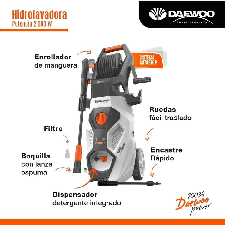 Hidrolavadora Elctrica Daewoo Eco Dax21-150 Presion Maxima Dax21-150 Con tu hidrolavadora podés dejar reluciente cualquier material o superficie. Su rocío de agua de alta presión es entre diez y cincuenta veces más potente que las mangueras de jardín, lo que hace más eficaz y fácil el proceso de lim...