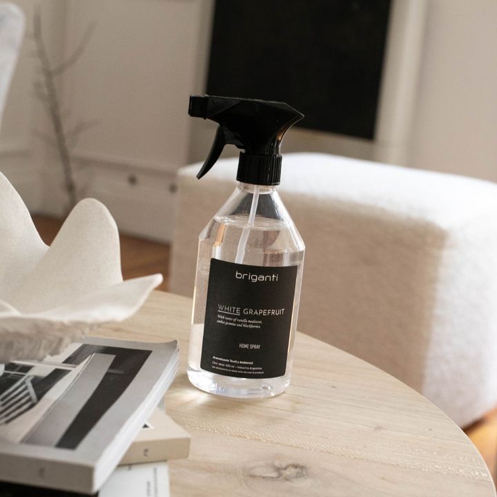 Home spray diseñado para eliminar los olores existentes en el aire y en la tela, dejando un aroma natural de pomelo blanco con notas de vainilla, jazmin y frutos rojos. Contenido: 500ml.