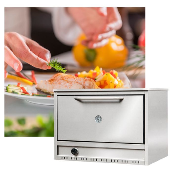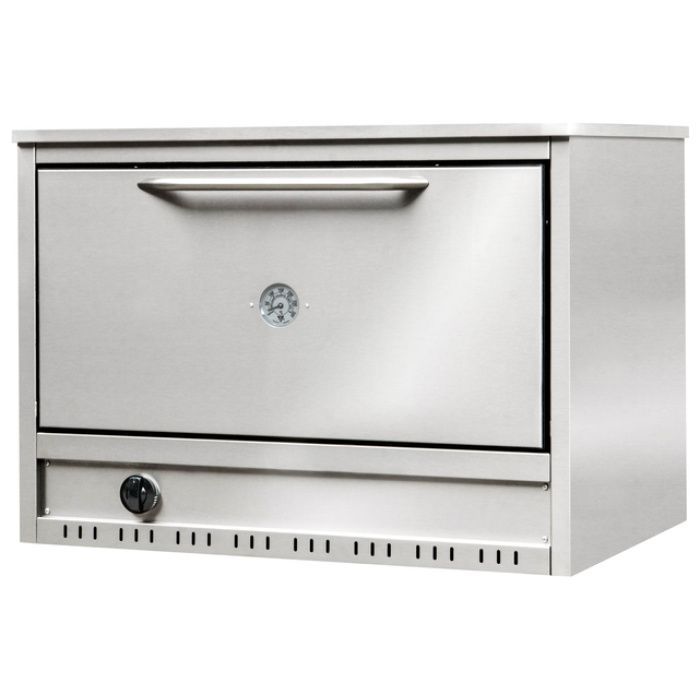 Caracteristicas . Valvula de seguridad . Piso con tejuelas refractarias . Pirmetro indicador de temperatura . Quemador longitudinal de acero inoxidable