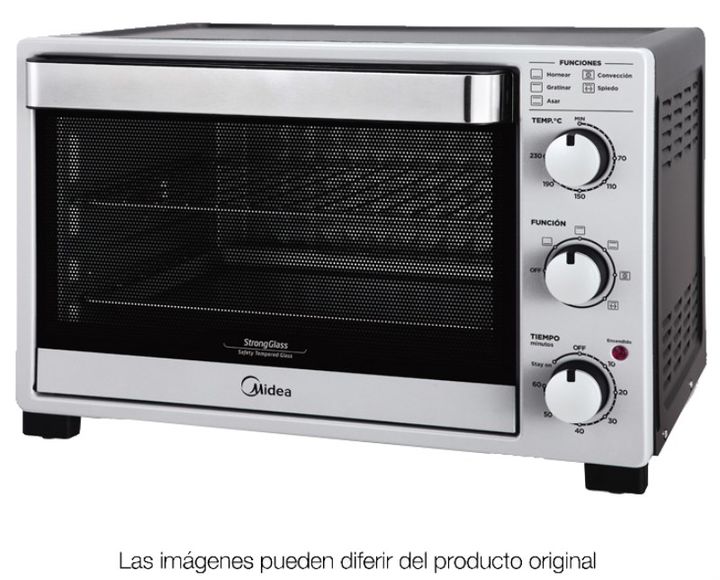 HORNO ELÉCTRICO TO-M332SAR1 32L 1500W MIDEA -Timer -Volumen bruto 32 Litros -Volumen neto o utilizable 26 Litros -Eficiencia energética B -Control de temperatura Si -Temperatura máxima (°C) 230 -Convección -Luz interior -Potencia (W) 1500 -Funciones Convección, Hornear, Gratinar, Asar -Accesorios As...