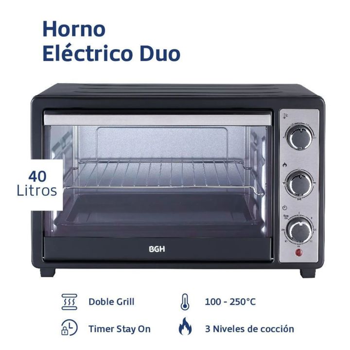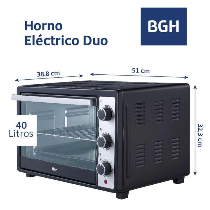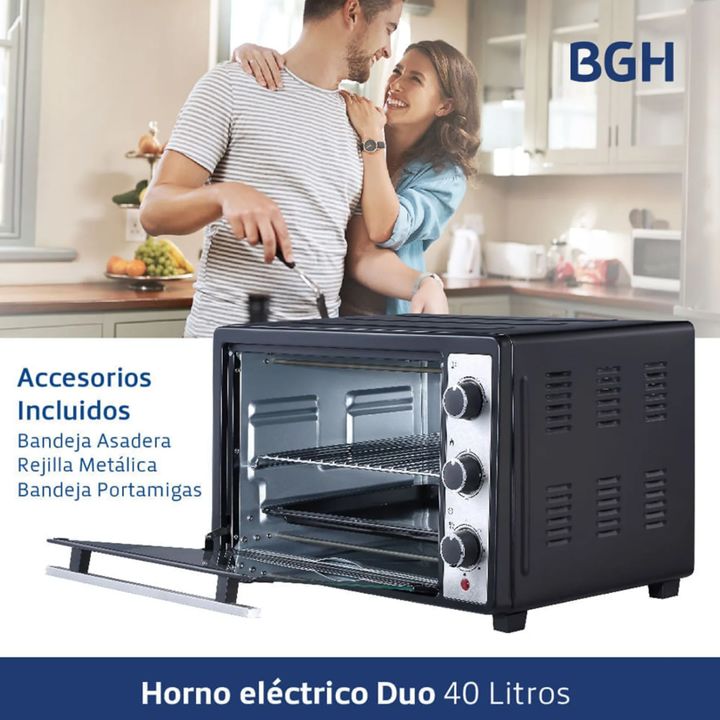 Horno Eléctrico 40L Negro Espacio y potencia para una cocina más eficiente Con una capacidad de 40 litros, este horno eléctrico es ideal para preparar desde recetas rápidas hasta platos más elaborados, brindándote la versatilidad que necesitás en tu cocina. Rendimiento superior en cada uso Potencia ...