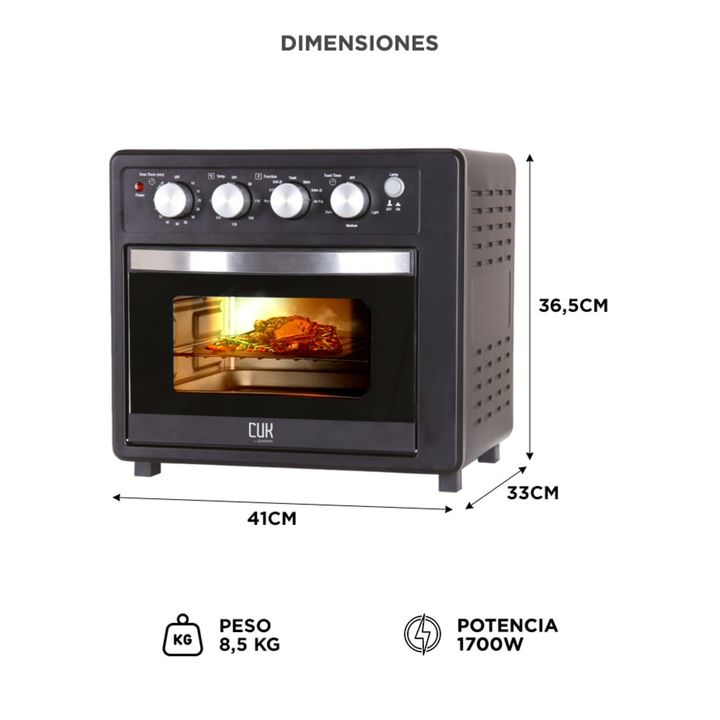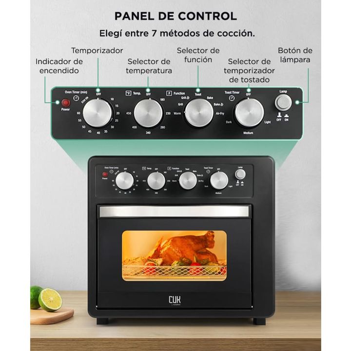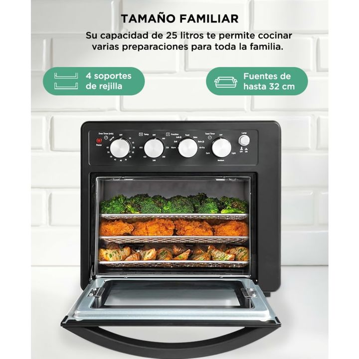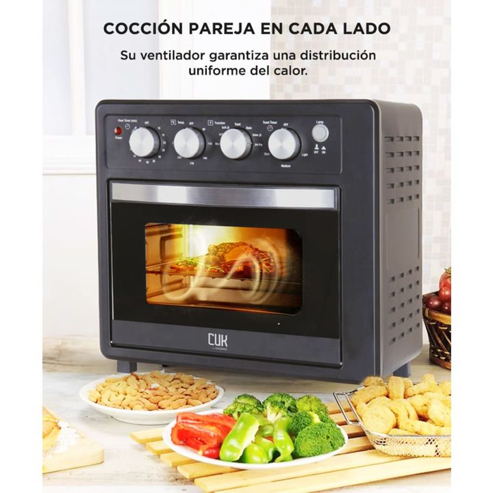 Disfrutá de comidas más sanas y crocantes con el horno freidora de aire Gadnic de 19 litros. Su sistema multifunción combina tecnología de convección con cocción por aire, permitiéndote freír sin aceite, asar carnes, tostar panes o preparar tus recetas favoritas de forma rápida y uniforme. Ideal par...