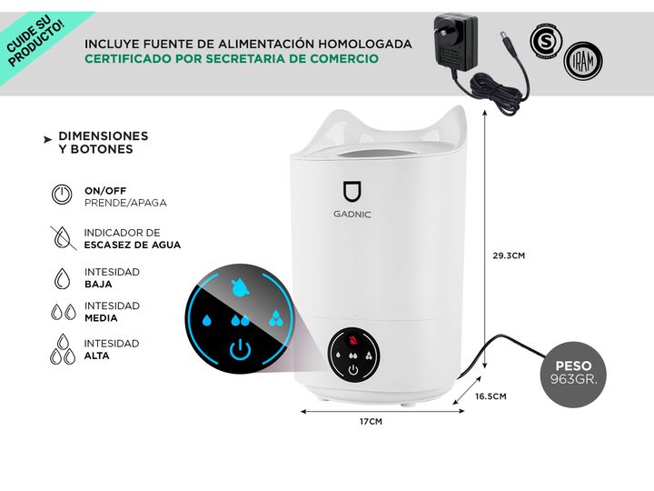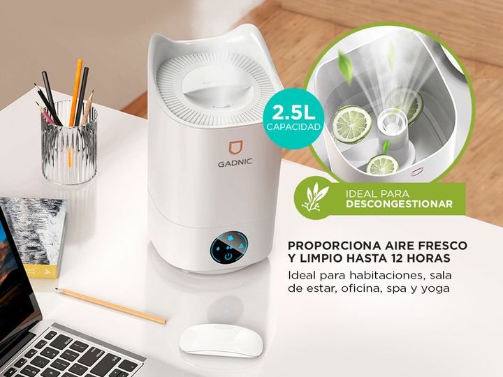 ¡Gadnic presenta su nueva linea de Humidificadores de ambiente! Este humidificador de oficina es súper silencioso sin molestar tu estudio, trabajar y lo hace perfecto para tu sueño. Gran capacidad rocía una enorme niebla que es perfecta para su uso personal en casa u oficina. El tamaño compacto te p...