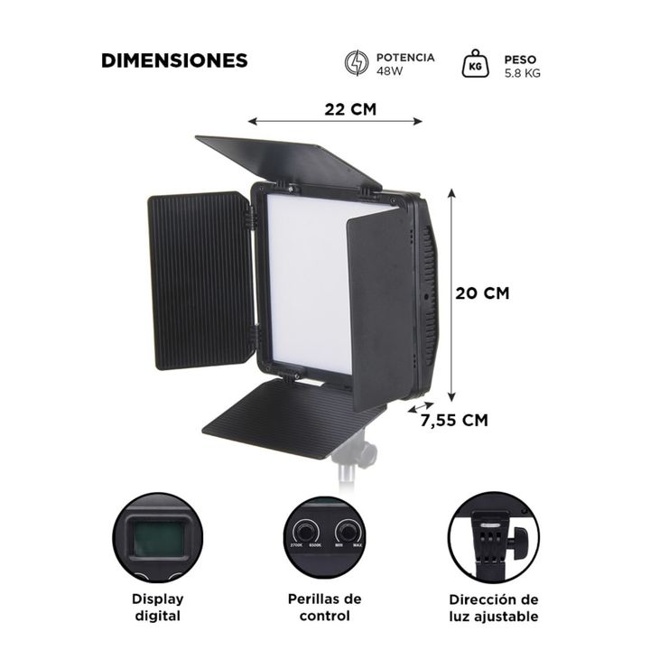 ¡Gadnic Presenta su Nuevo Iluminador Continuo! Con una Potencia de 48 W y 8400 Lúmenes, puedes iluminar vídeos, fotos y más. Es ideal para estudios fotográficos, uso profesional, en exterior o salas. Ambienta tus proyectos con los dos colores posibles, puedes regular el brillo y la intensidad para s...