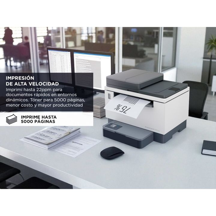 Imprimí más, gastá menos Con la HP LaserJet Tank 2602sdw, obtené hasta 5.000 páginas impresas desde el primer uso gracias a su tóner precargado. Reducí tus costos operativos sin sacrificar calidad. Conectividad total para tu oficina Integrá fácilmente esta multifuncional a tu red mediante Wi-Fi de d...