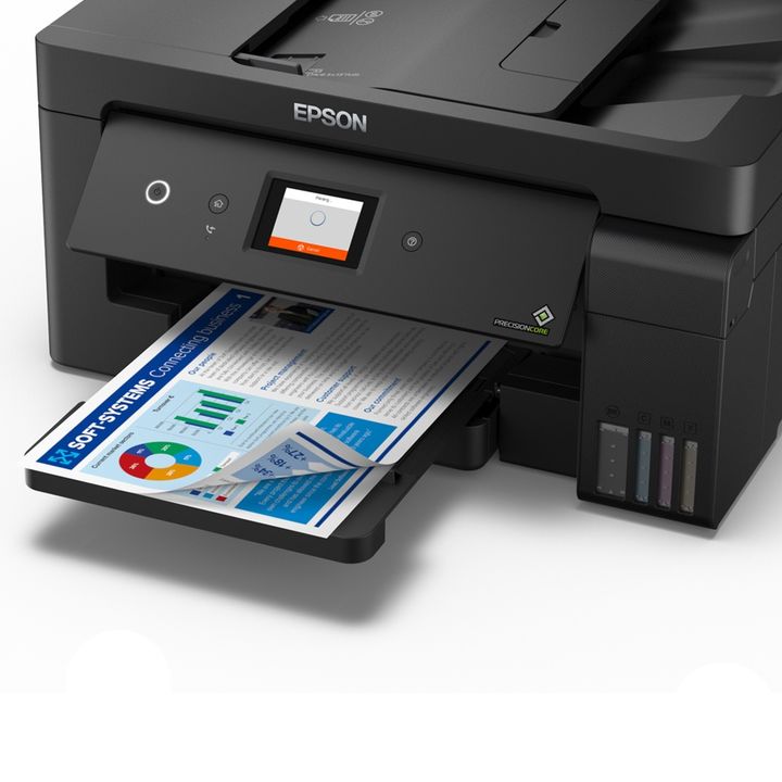 EPSON L14150 (A3) (1327) La nueva multifuncional inalámbrica EcoTank 4 en 1 L14150 te ofrece impresión 100% sin cartuchos con soporte para formatos anchos hasta A3+, con botellas de tinta diseñadas para evitar derrames y codificadas para llenado fácil de cada color.