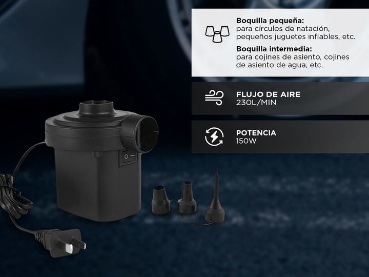 ¡Introducimos la solución definitiva para inflar tus neumáticos, colchones de aire, juguetes y más, sin esfuerzo alguno! Presentamos el inflador eléctrico, una herramienta versátil y poderosa diseñada para hacer frente a todas tus necesidades de inflado. Este dispositivo compacto y eficiente te brin...
