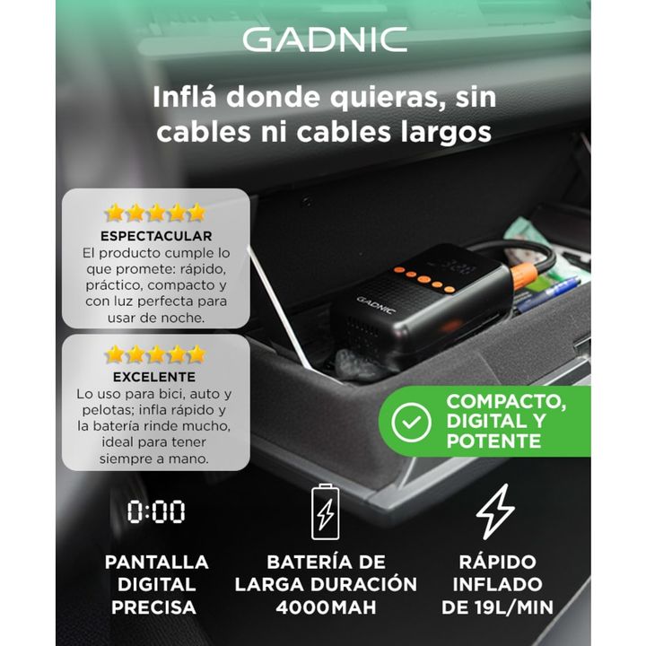 ¡Te presentamos nuestro inflador inalámbrico compacto y portátil! Este inflador es compacto y fácil de transportar. Es perfecto para su uso sobre la marcha y se puede guardar cómodamente en tu coche o garaje. La pantalla digital incorporada te permite supervisar el proceso de inflado con precisión, ...