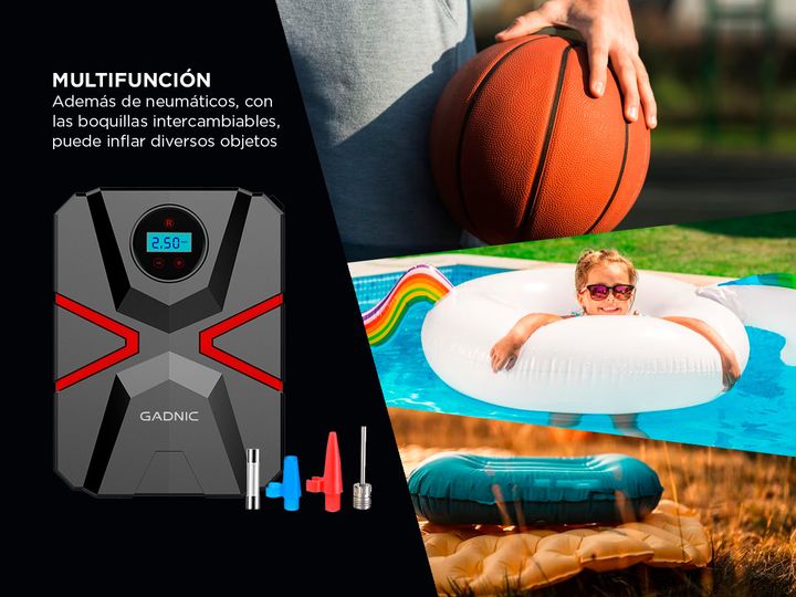 El inflador de neumáticos Gadnic es una solución innovadora y versátil diseñada para satisfacer las necesidades de inflado de cualquier usuario. Con su diseño compacto y portátil, este inflador es fácil de transportar y almacenar en su vehículo, convirtiéndolo en un accesorio esencial para viajes la...