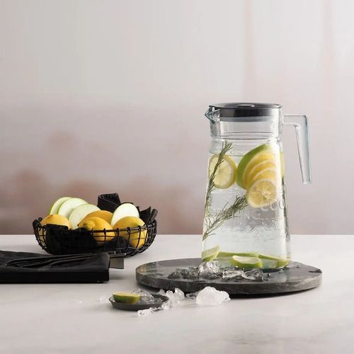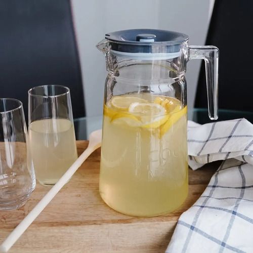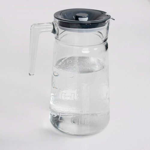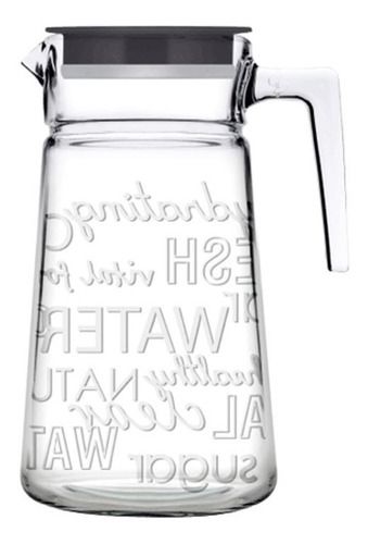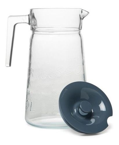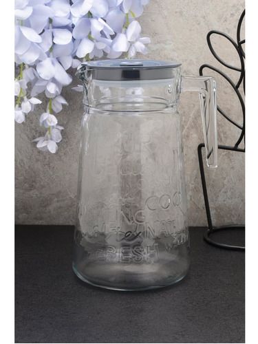 JARRA DE VIDRIO CON MANIJA Y TAPA TAPA DE PLASTICO COLOR GRIS CAPACIDAD : 2 LITROS MEDIDAS : 24,5 CMS DE ALTO / DIAMETRO BOCA : 10 CMS. / DIAMETRO BASE : 13 CMS VIDRIO TRANSPARENTE DE LA MEJOR CALIDAD MANIJA PARA SERVIR Apto para lavavajillas, congelador y refrigeración Cristalería templada o endure...