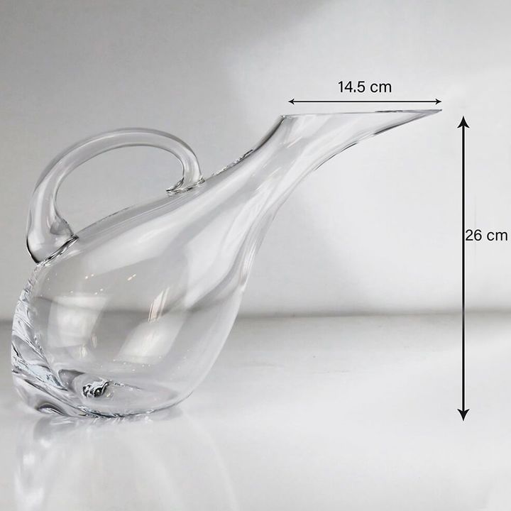 Jarra Decanter Botella Botellon de 1750 ml en CRISTAL Medidas : Capacidad : 1700 ML Altura : 210 mm. 8 1/4” Diametro : 145 mm. 5 5/7” Largo : 30 cm Peso : 750 gramos Ideal para colocar vino o bebidas en la mesa , su inclinacion da un detalle de diseño unico . Marca : PASABAHCE Origen : Turquia