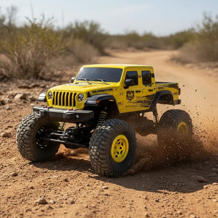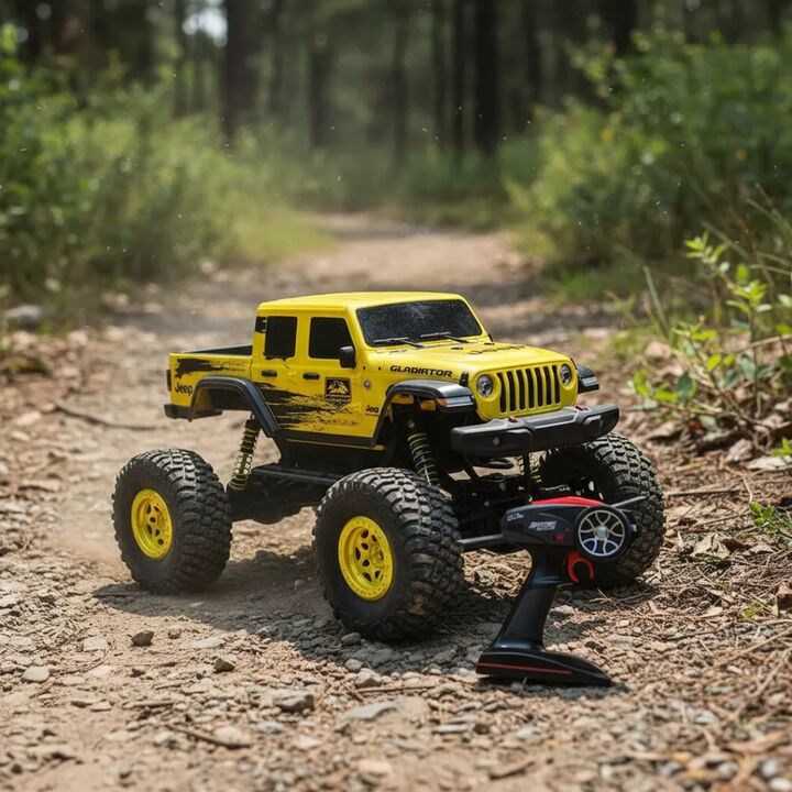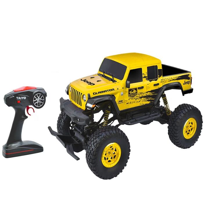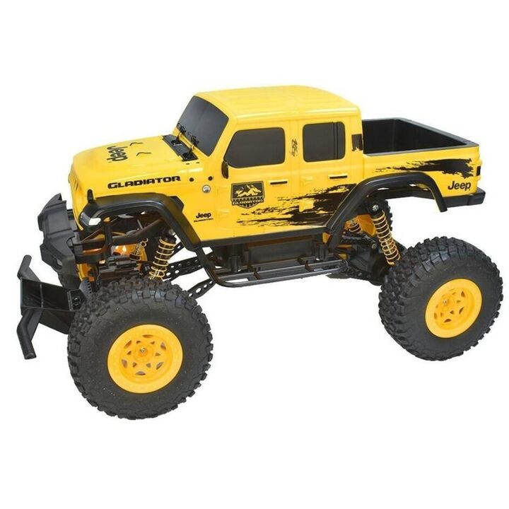 Jeep Gladiator carro de control remoto Baterías recargables para el vehículo, asegurando horas de diversión continua. Control remoto que funciona con 3 pilas AA. Material de las ruedas de goma que proporciona gran tracción. Cuerpo construido en PVC, ligero y duradero. Capacidad para jugadores desde ...