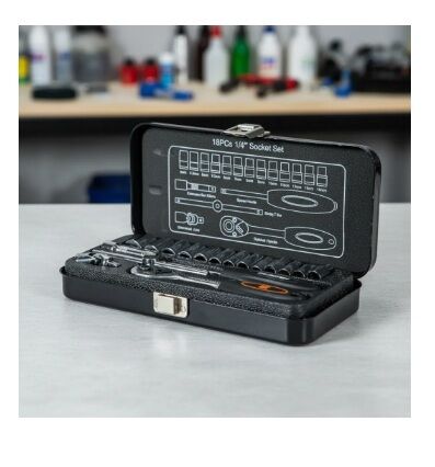 SET JUEGO DE BOCALLAVES ACCESORIOS 18 PIEZAS LUSQTOFF ESTUCHE Este set de bocallaves es ideal para quienes buscan herramientas de alta calidad y durabilidad. Fabricado en acero cromado, garantiza resistencia y un acabado que previene la corrosión. Con un peso de 1975 g, su diseño compacto permite un...