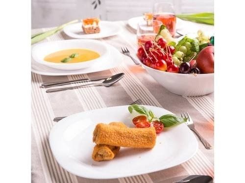 Juego de 6 platos playos semi cuadrados de 26 cm. Material vidrio templado- tres veces mas resistentes. Ideal para lucir la mesa de todos los das.