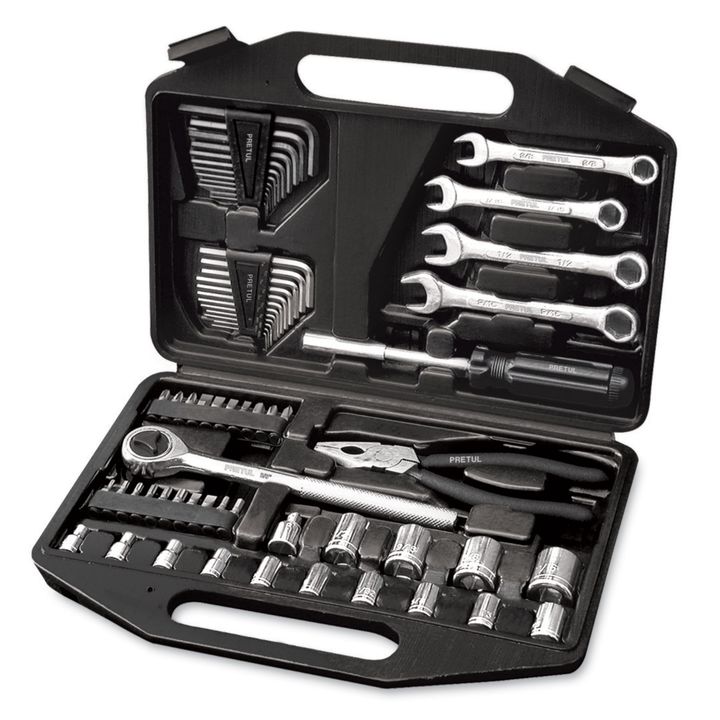 Juego de 66 herramientas 1/4 y 3/8 para mecánico Incluye Cantidad de piezas 66 Empaque individual Estuche plástico Inner 3 Master 12 14 Dados: (10) 3/16 a 7/16, (4) 1/2 a 11/16 1 Matraca 3 Puntas de cruz: PH1 A PH3 2 Puntas allen: 3 y 4 mm 6 Puntas planas: (4) 4 a 7 mm, (2) 3/16 y 7/32 3 Puntas pozi...