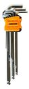 JUEGO DE 9 LLAVES ALLEN LARGAS CON PUNTAS ESFÉRICA L6944 • Acero cromo vanadio • La punta esférica o de bola permite ajustar o desajustar hasta 25º de inclinación • Garantía: 12 meses