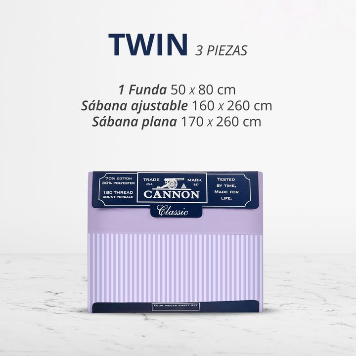 JUEGO DE SABANAS CANNON 200 HILOS 1 PLAZA Y MEDIA ( TWIN ) - Juego de Sabanas Cannon 1 ½ Plazas Twin 200 hilos - Modelo Classic Rayado / Modelo colors Liso - Composición: 100 % algodón - 200 hilos - Transpirable, duradera y cómoda - Fácil cuidado , apta todo tipo de lavarropas - Resistentes a la dec...