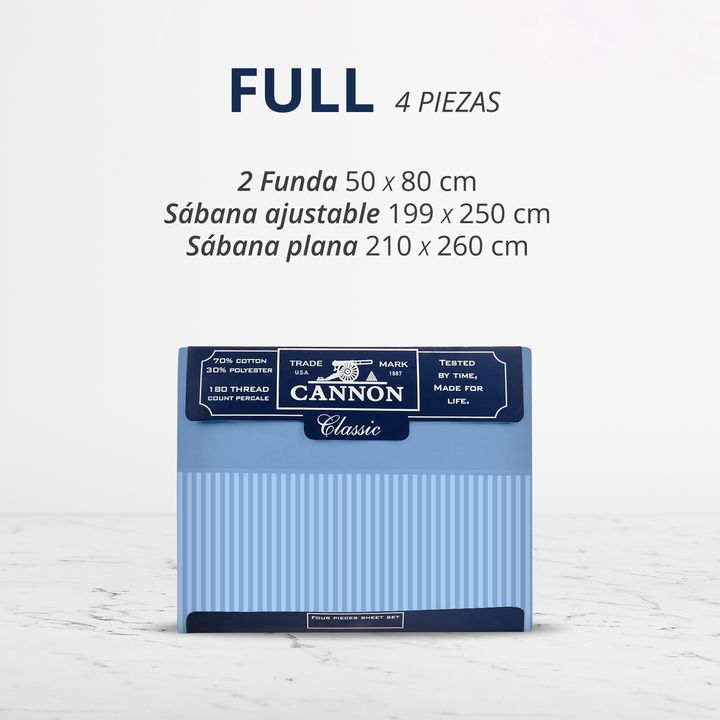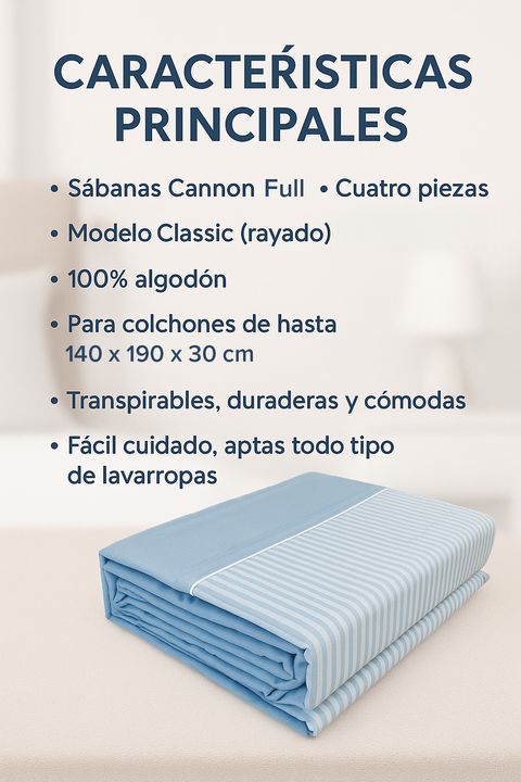 SÁBANAS CANNON 200 HILOS 2 PLAZAS - Sabanas Cannon Classic Rayado - (Cuatro Piezas) - Composición: 100% algodón - Cantidad de hilos: 200 - Para colchones con medidas hasta: 1,40 x 1,90 x 0,30 m - Transpirable, duradera y cómoda - Fácil cuidado, apta todo tipo de lavarropas - Resistentes a la decolor...