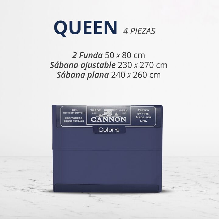 SÁBANAS CANNON 200 HILOS QUEEN - Sabanas Queen Size (Cuatro Piezas) - Modelo Colors Lisa - Composición: 100% algodón - Cantidad de hilos: 200 - Colchones Queen Size de hasta 160cm (ancho) x 200cm (largo) x 0,35cm (alto) - Transpirable, duradera y cómoda - Fácil cuidado , apta todo tipo de lavarropas...