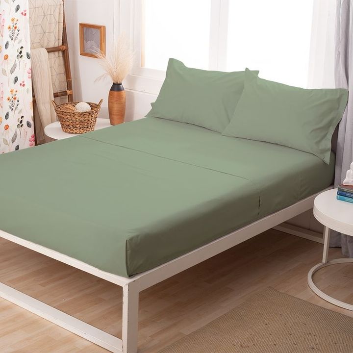 Juego de Sabanas Casablanca Lisa 2 1|2 plazas Plata Verde humo