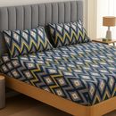 "Juego de sábanas estampado 1 ½ plaza, ideal para colchones de hasta 20 cm de alto. Confeccionado en tela suave, resistente y fácil de lavar, combina confort y diseño moderno para renovar tu dormitorio con estilo. Su estampa geométrica aporta un toque actual y versátil que se adapta a cualquier ambi...